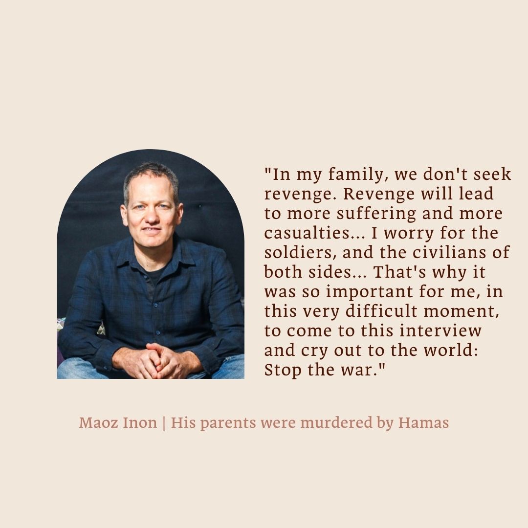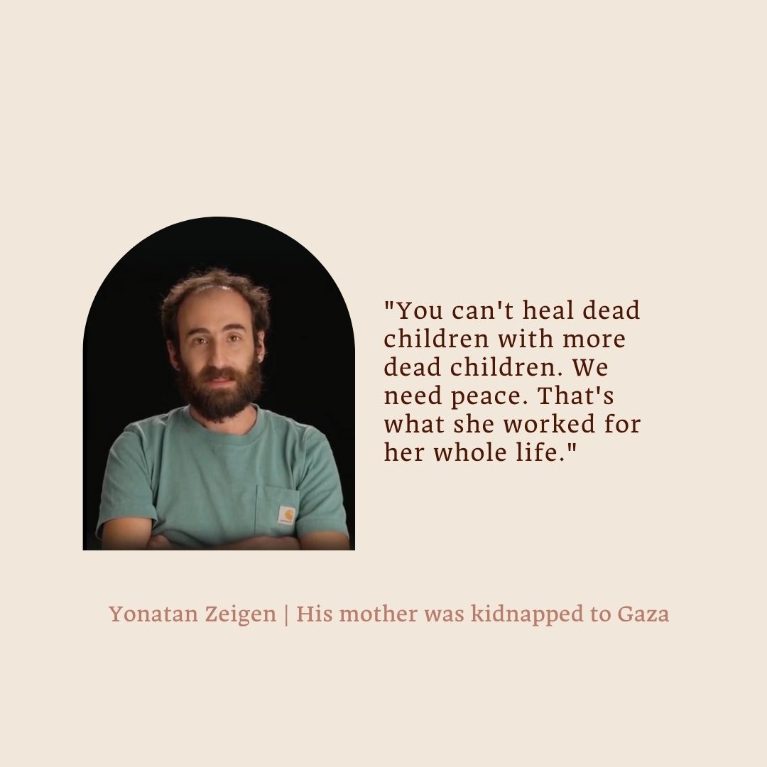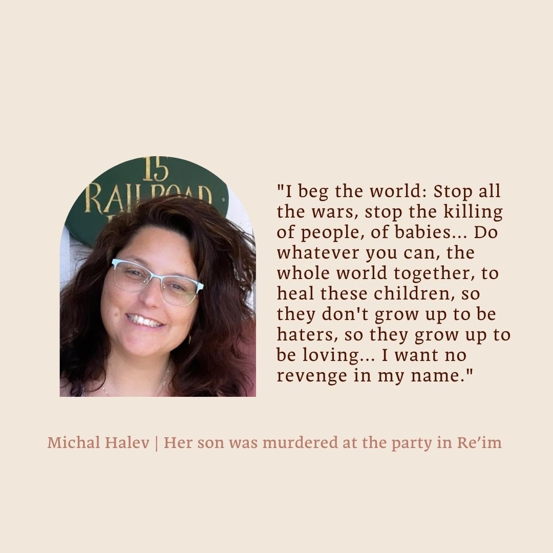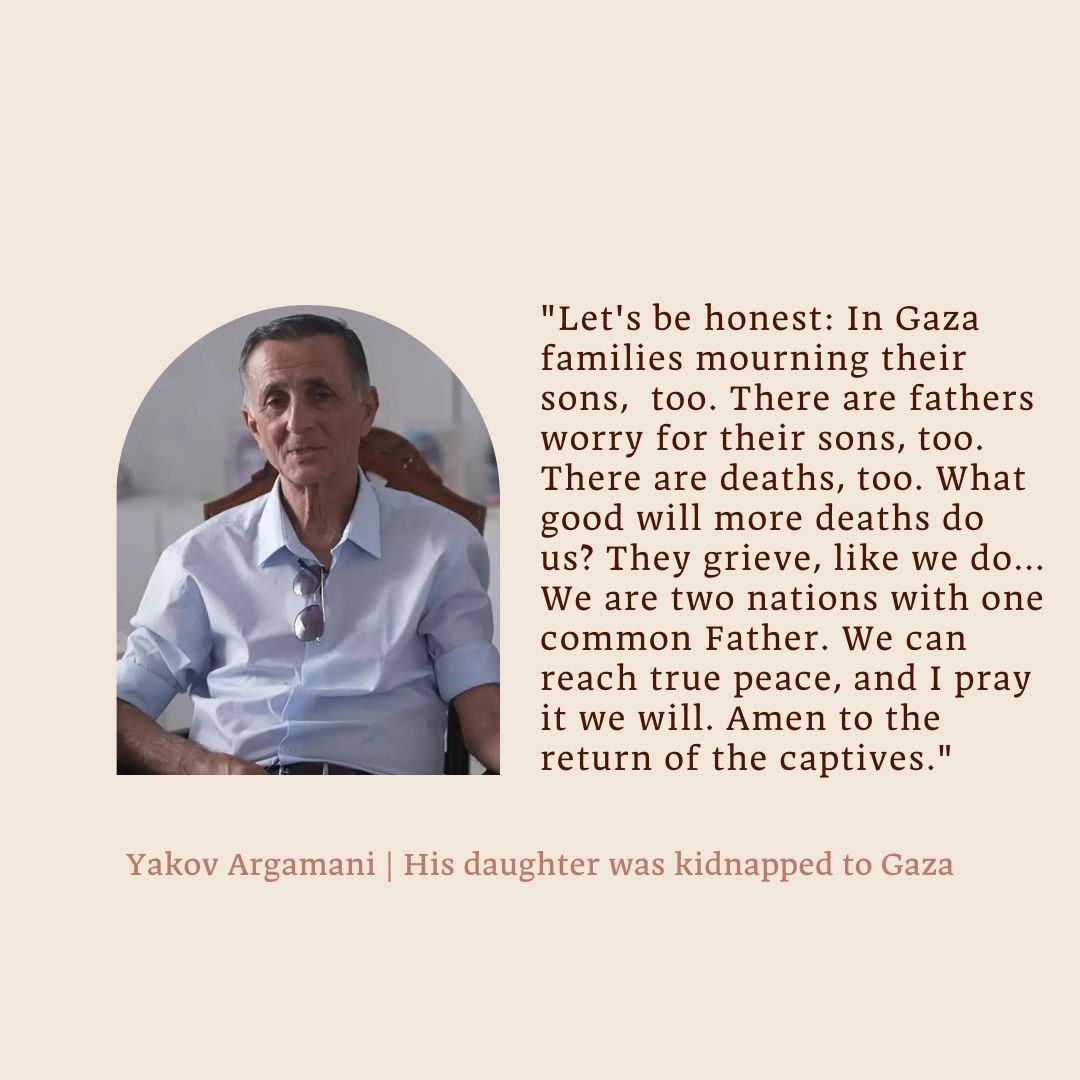 Another chilling fact that touches me deeply is the fact that among the abducted and killed Israelis, there are people who represent an inspiring elite: A peace and human rights activist who engaged in humanitarian assistance to the people in Gaza; a peace activist within Israel; an entrepreneur who was involved in innovative work for food security in third-world countries; members of the kibbutz movement who represent peace-seeking communities of cooperation; and young people who were slaughtered at the nature party and who were part of a global tribe of peace-loving people who share unity and universal love.