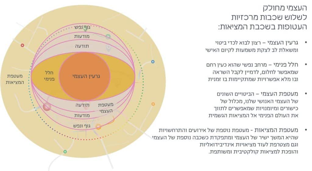 ההיטל הבסיסי של המודל מציג את שלוש שכבות העצמי ושלוש שכבות הקיום באשר הוא: